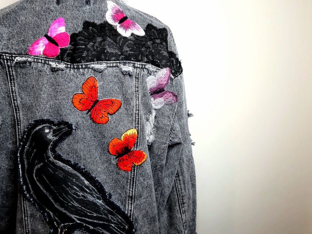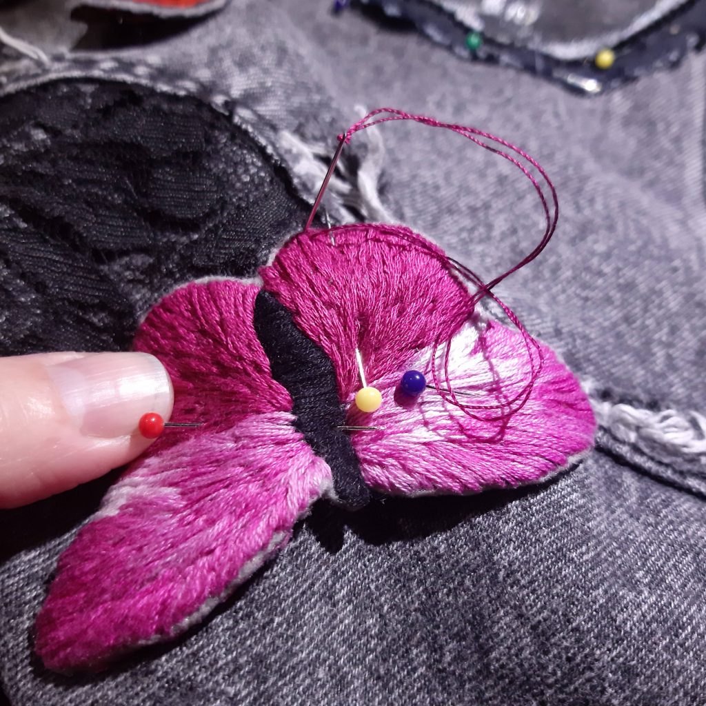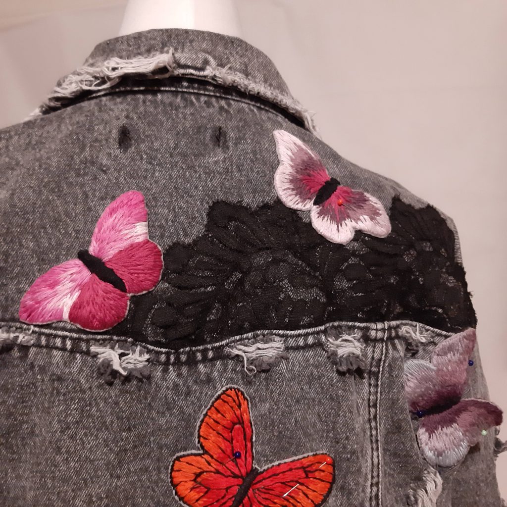 Hours and hours to attach the embroidered motifs to the denim jacket.